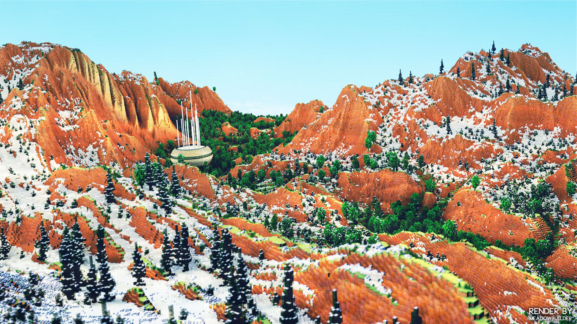 Presenting Cradle of the Gods, a 2000x2000 Minecraft terrain map. This beautiful map features ultra-realistic red Minecraft canyons and mountains.