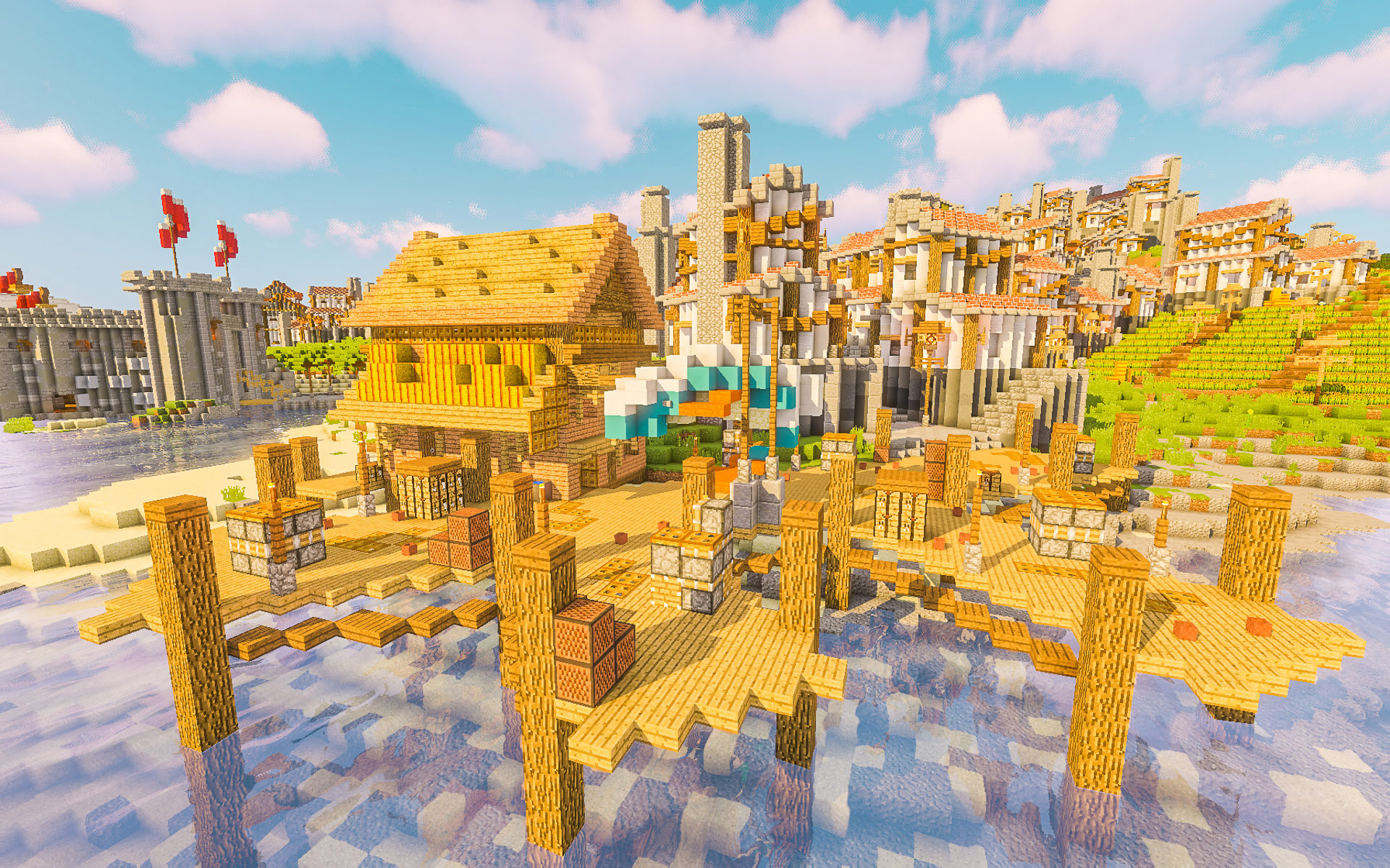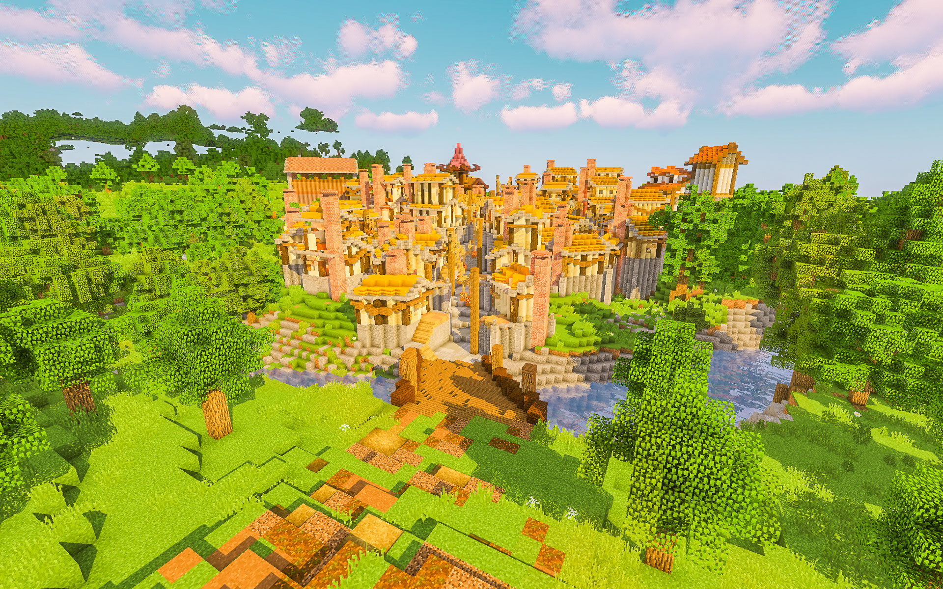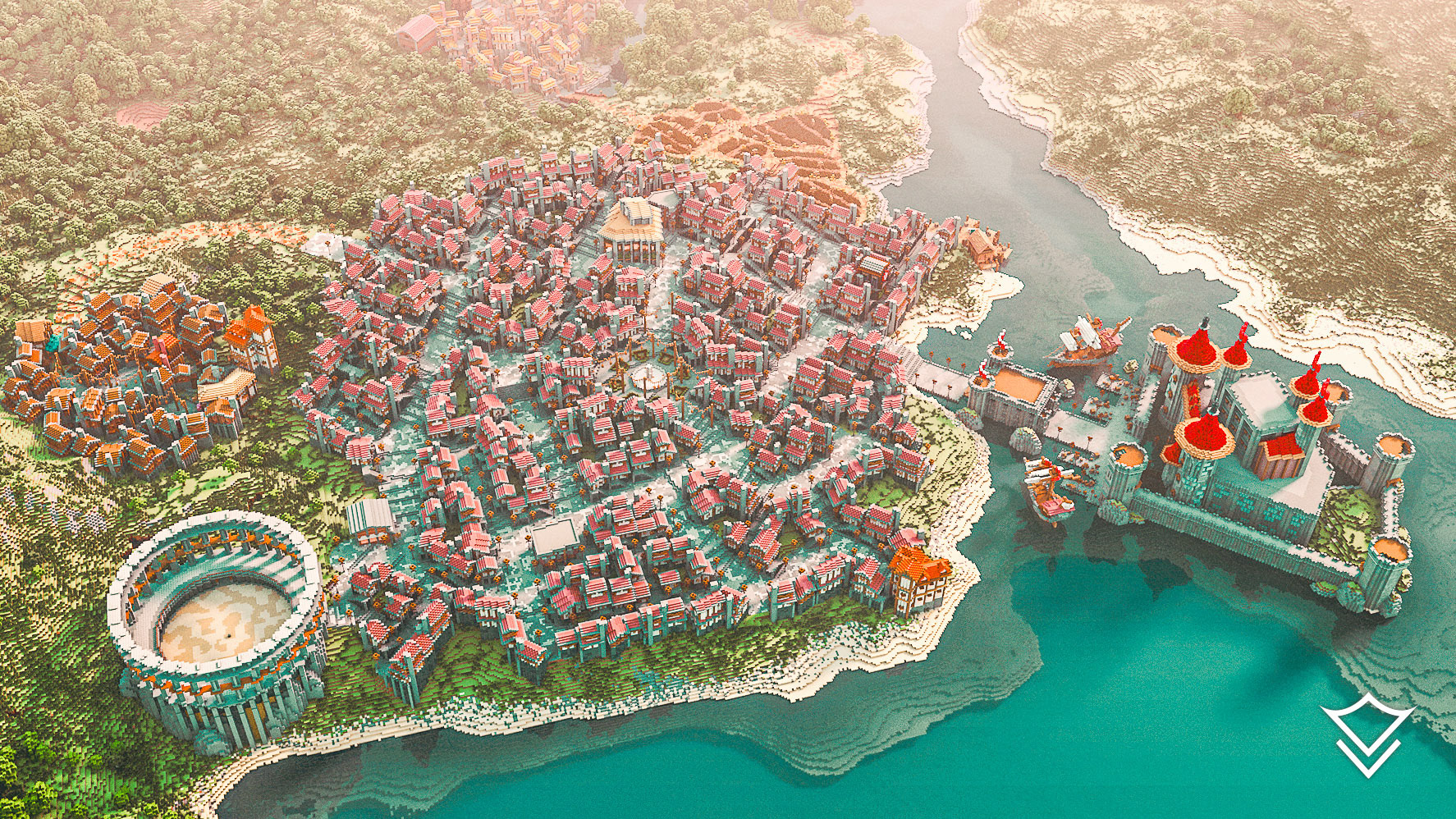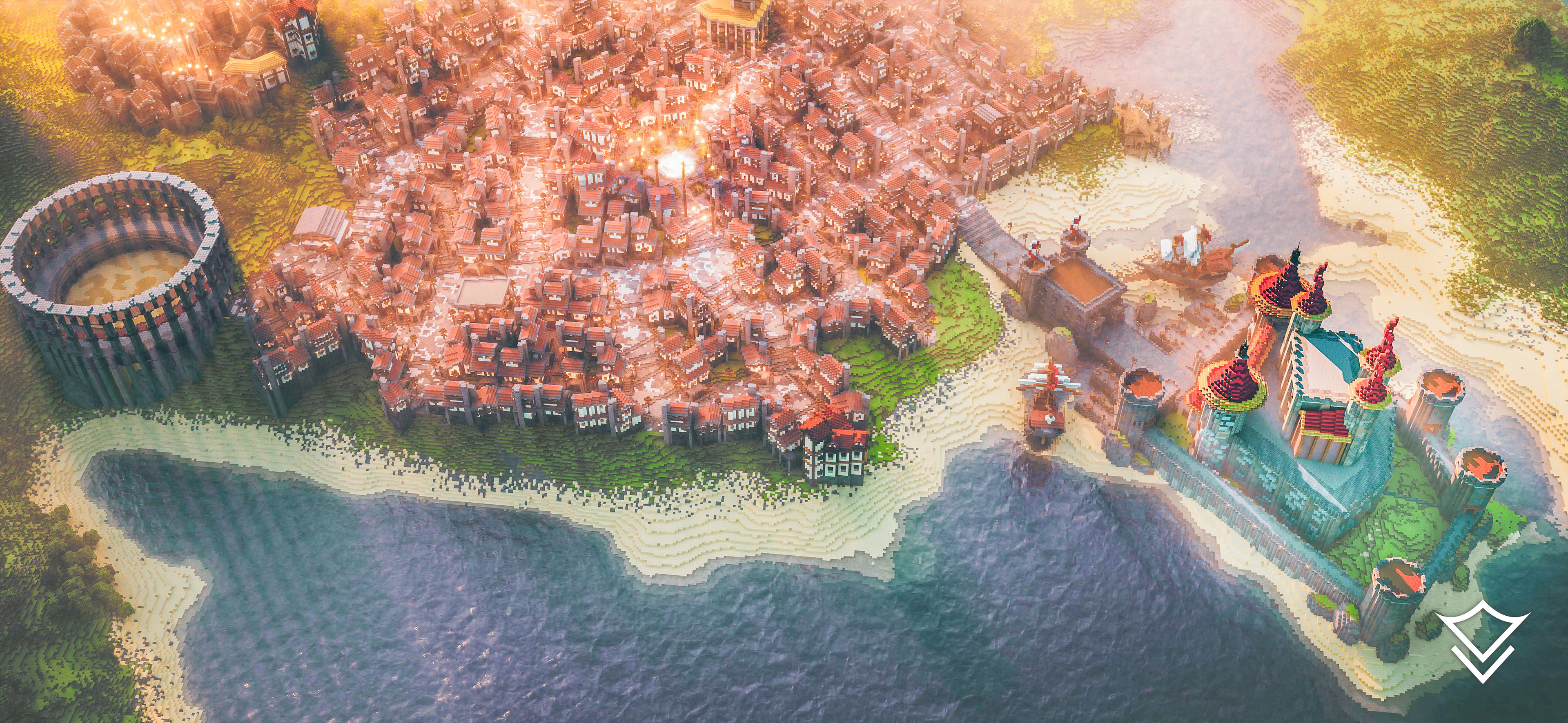 Welcome to Hamlyn, the first of four kingdoms on a massive 17,000 x 17,000 block terrain map. This kingdom is home to a bustling main city and castle, located on a 300x300 area, as well as several surrounding towns each measuring 100x100 blocks.