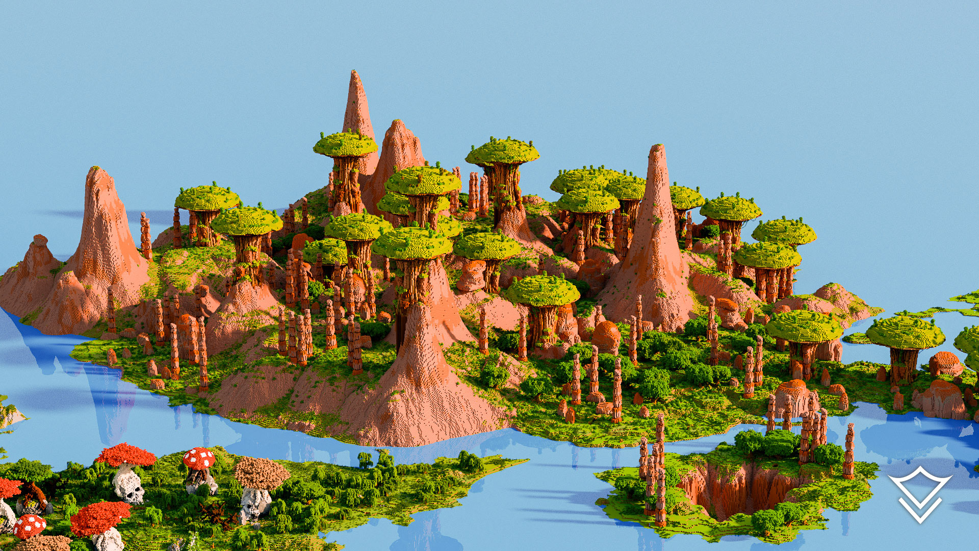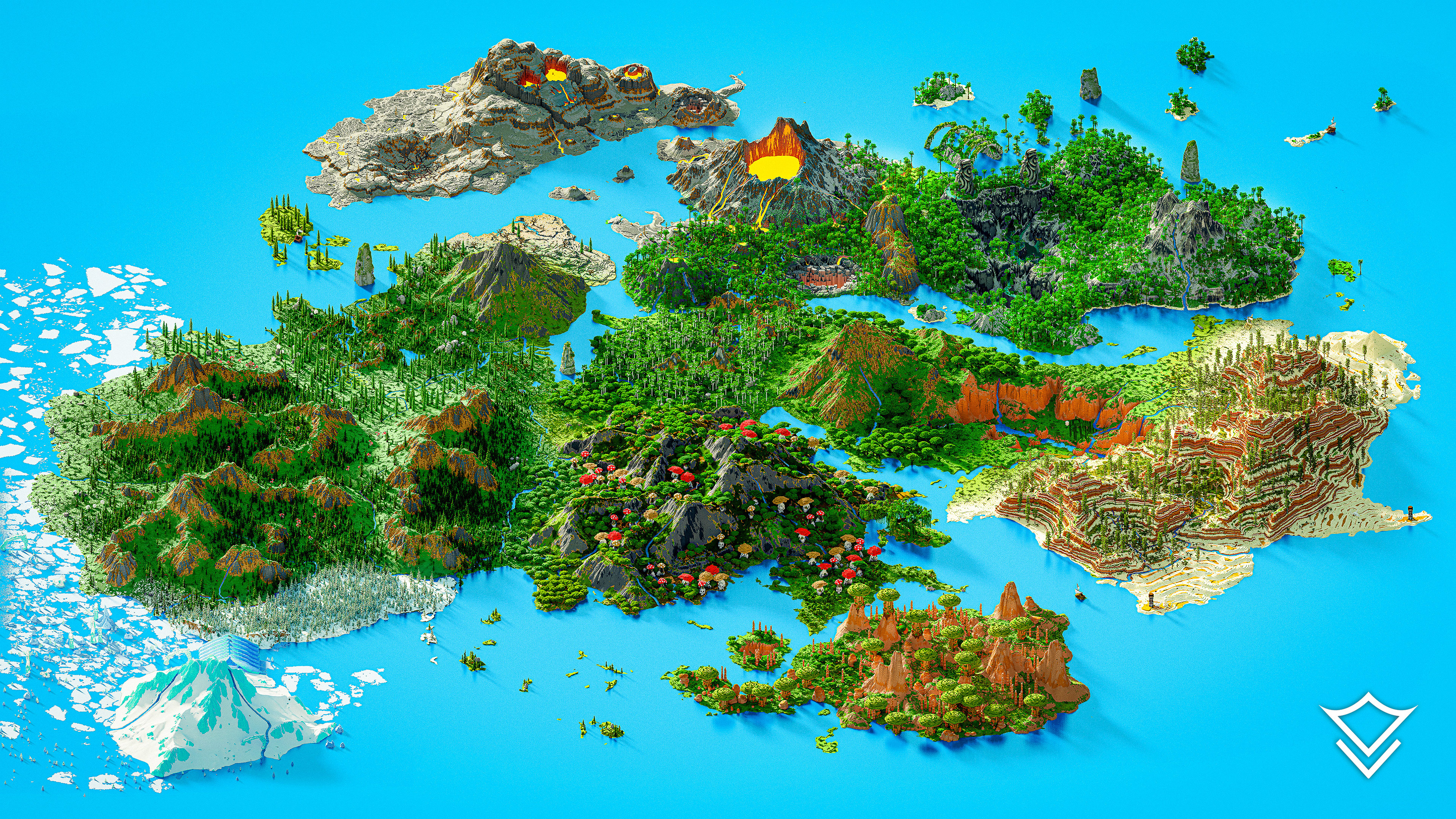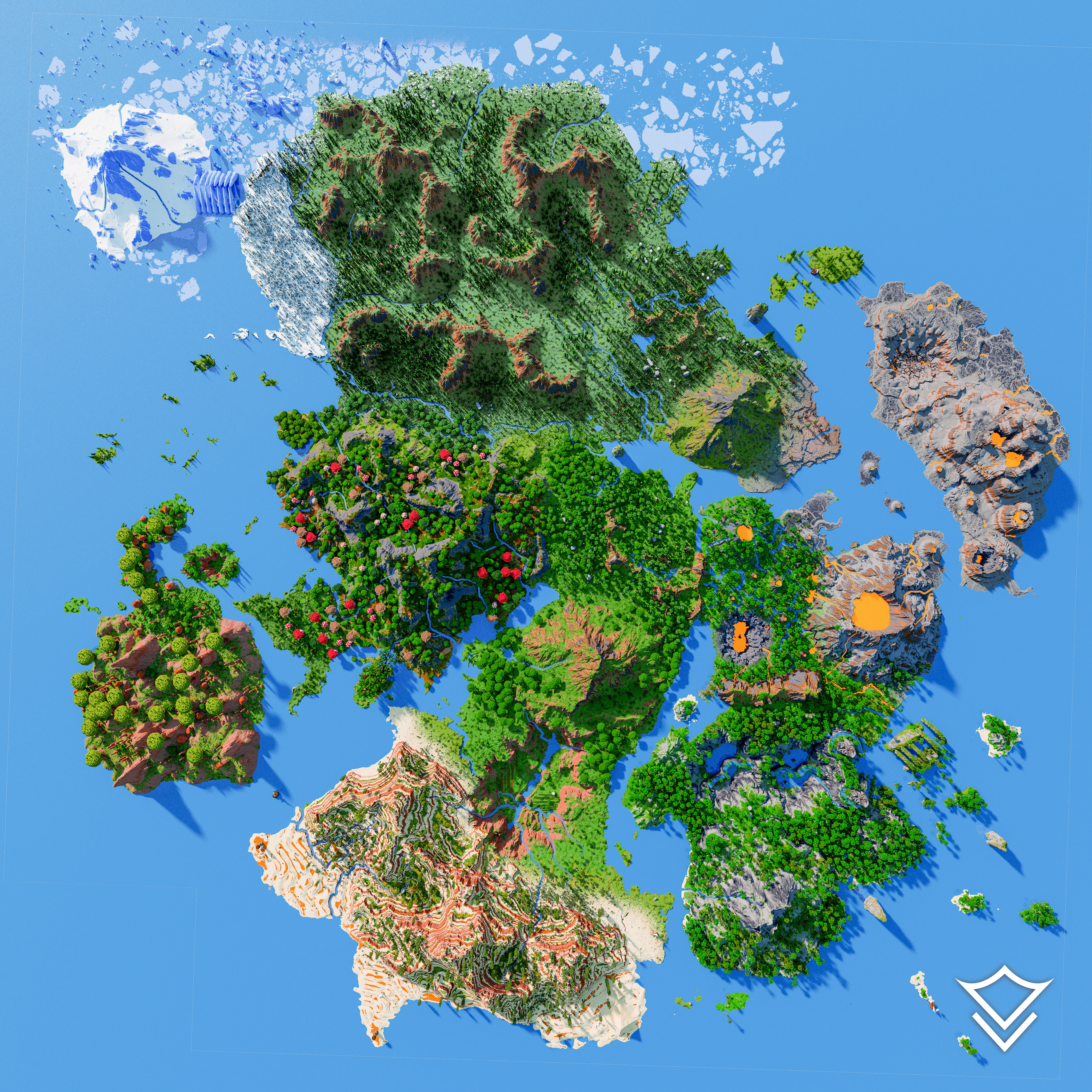 Immerse yourself in a world of diverse landscapes with our expansive 5000 x 5000 block multi-biome terrain map, designed for Java 1.20 and Bedrock 1.20 editions of Minecraft. This survival-friendly map is complete with caves and ores. Traverse a fantasy rock biome with rooted top trees, explore the majestic mesa mega-canyons and tree-house filled mesas, and uncover secrets of the dense jungle and eerie skull island. Navigate stone shores, dark oak forests, and venture into the treacherous ice tunnel or the mysterious dead fungi forest.