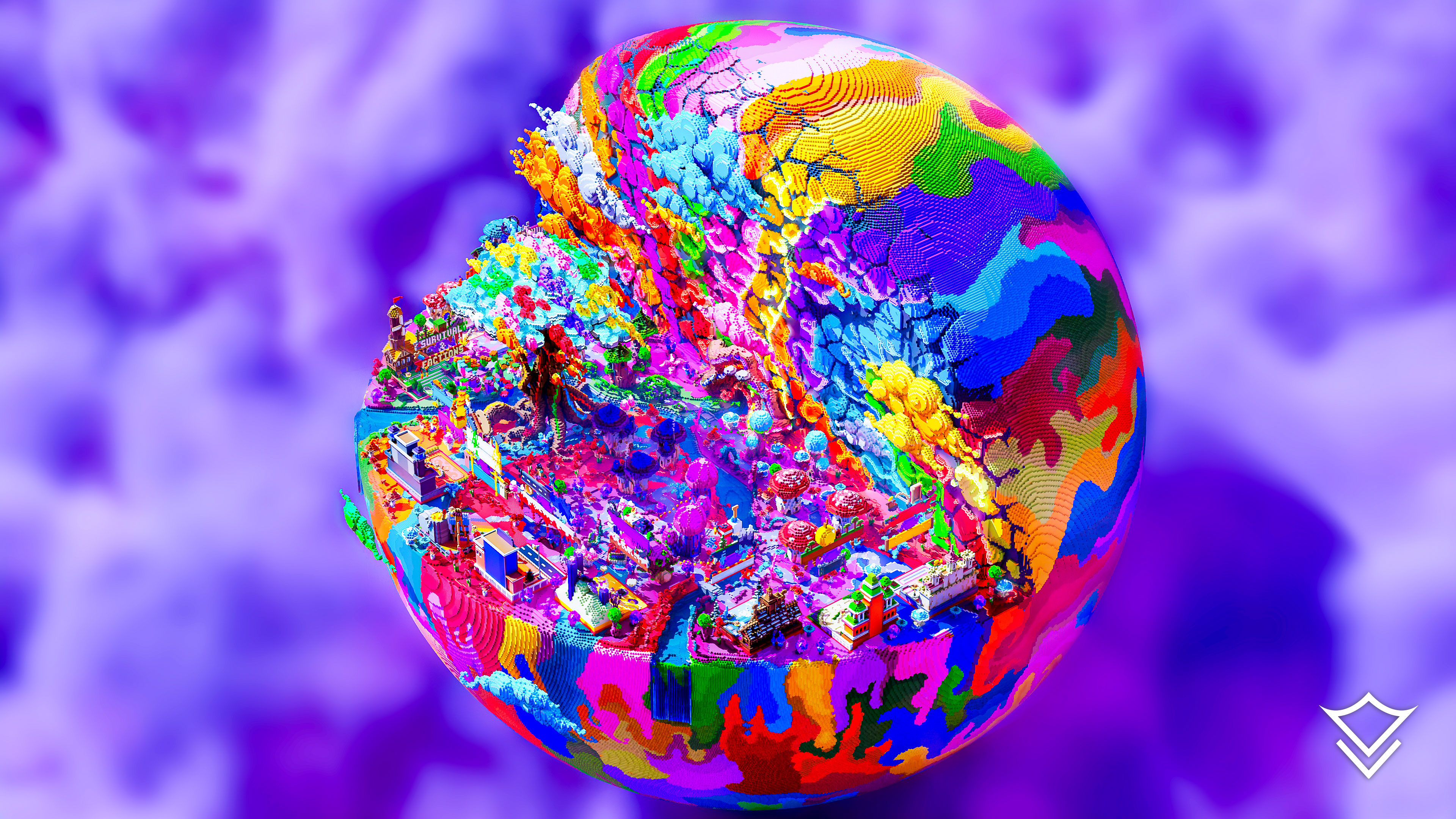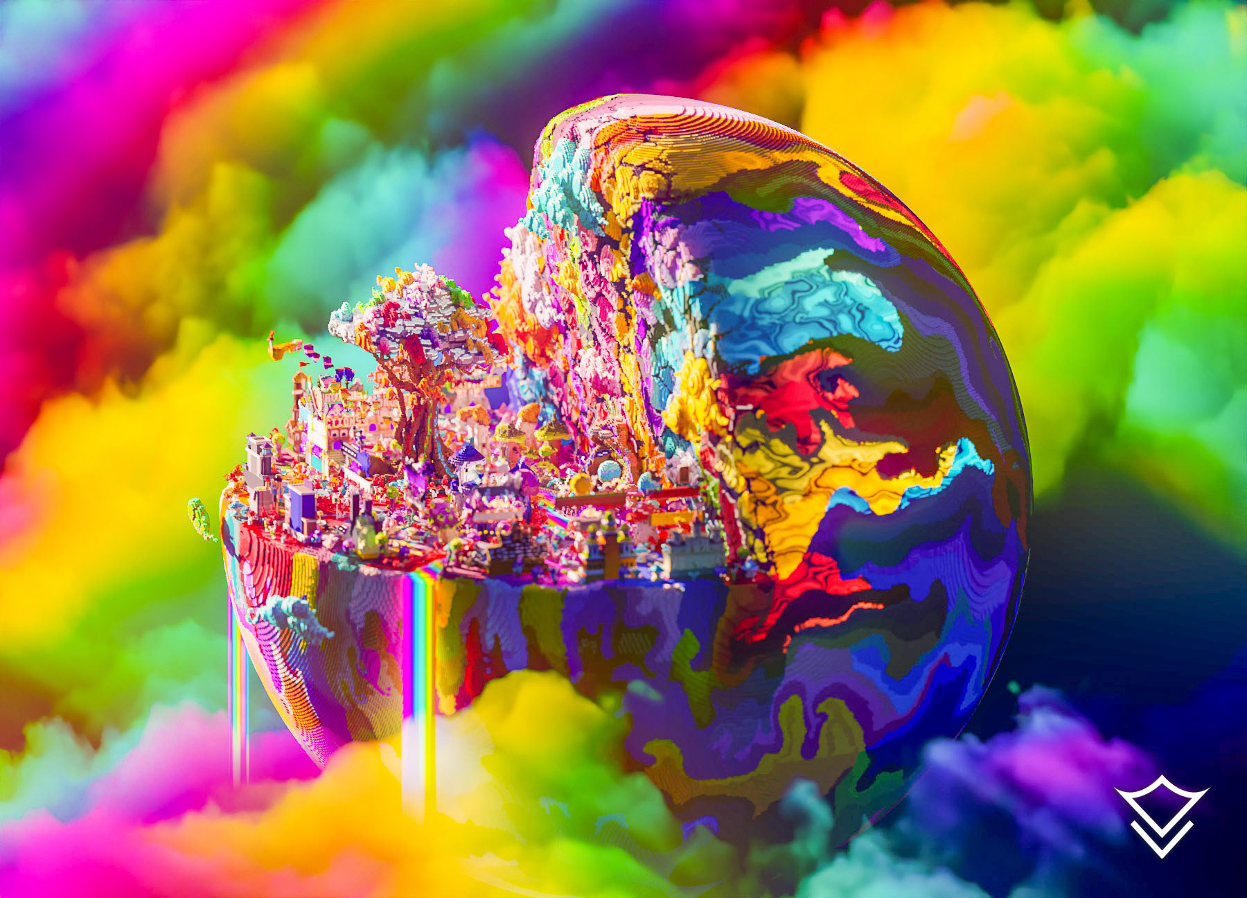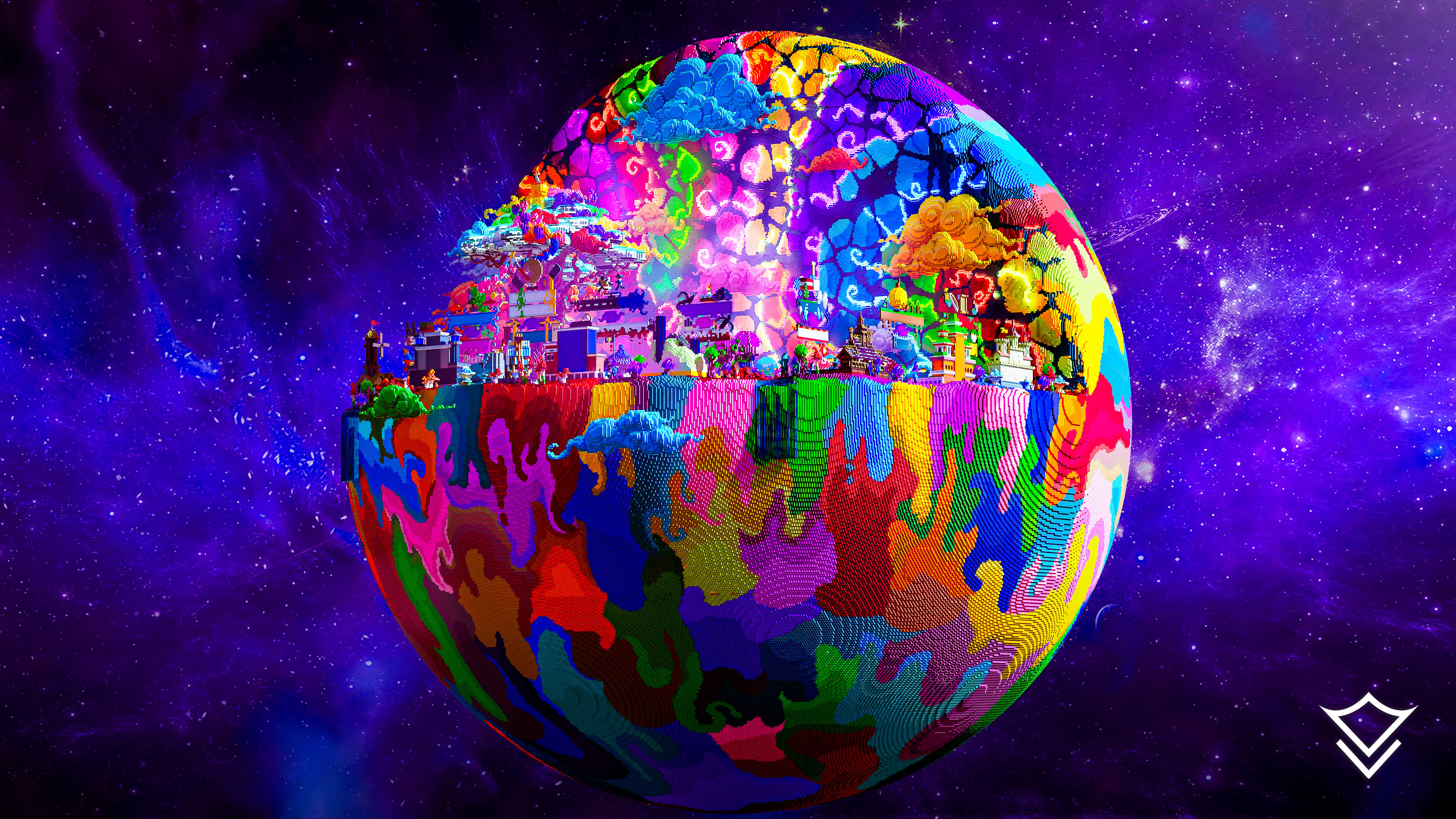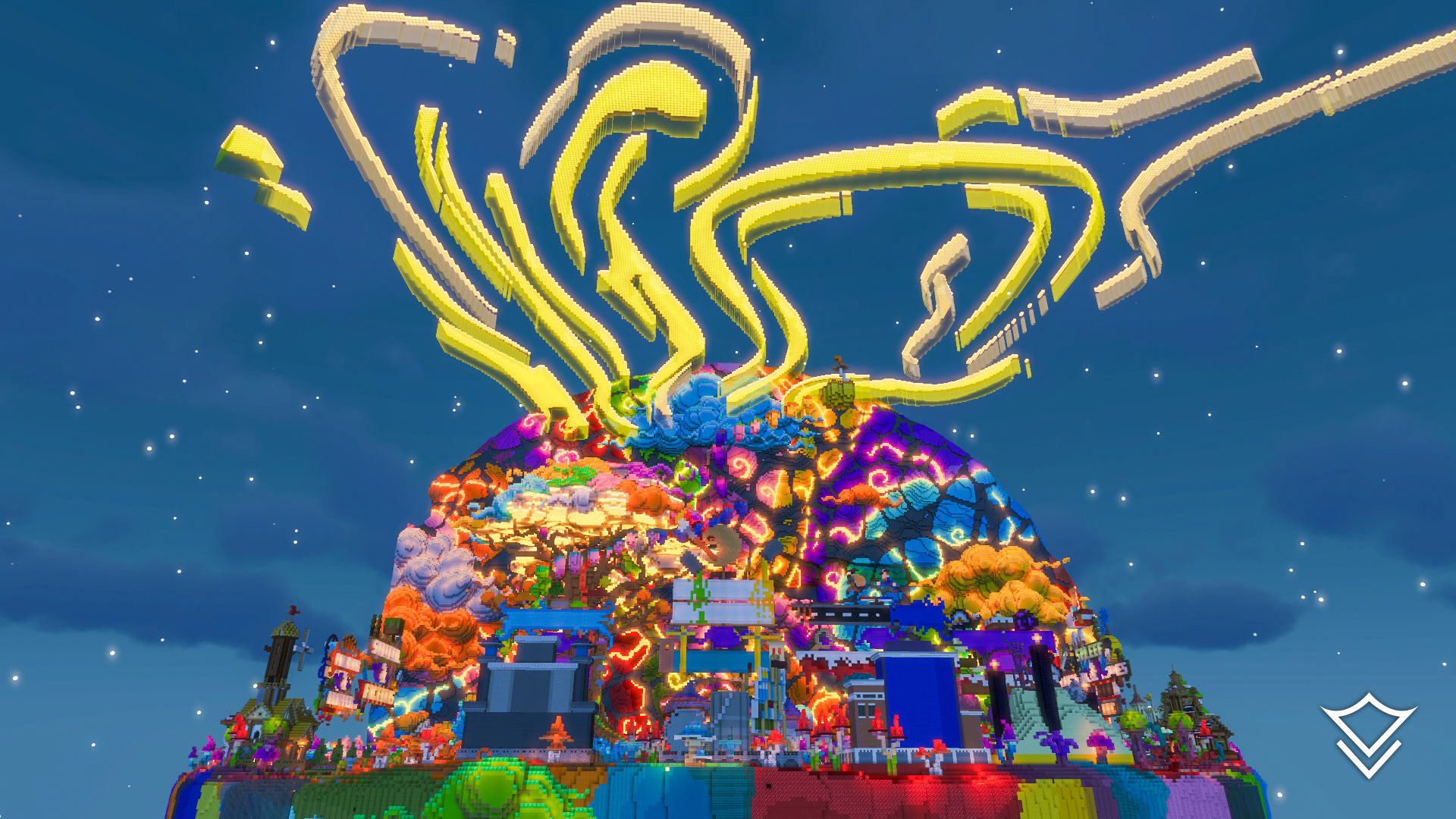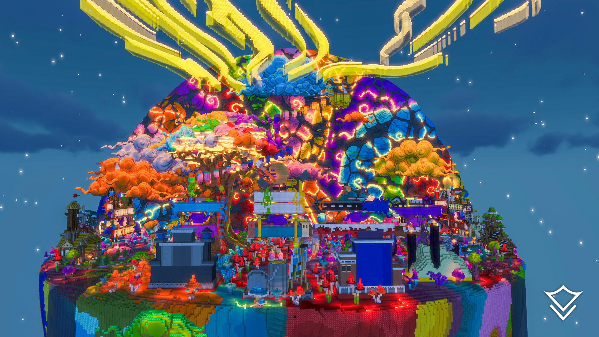 Dive into the vivid realm of Nova Nexus, a psychedelic Minecraft hub designed for a large Minecraft network. This mesmerizing 3D globe, bursting with neon colors, is centered around a majestic tree. Glowing veins of light emanate from its roots, weaving through the terrain and feeding into an enchanting, brightly illuminated canopy.