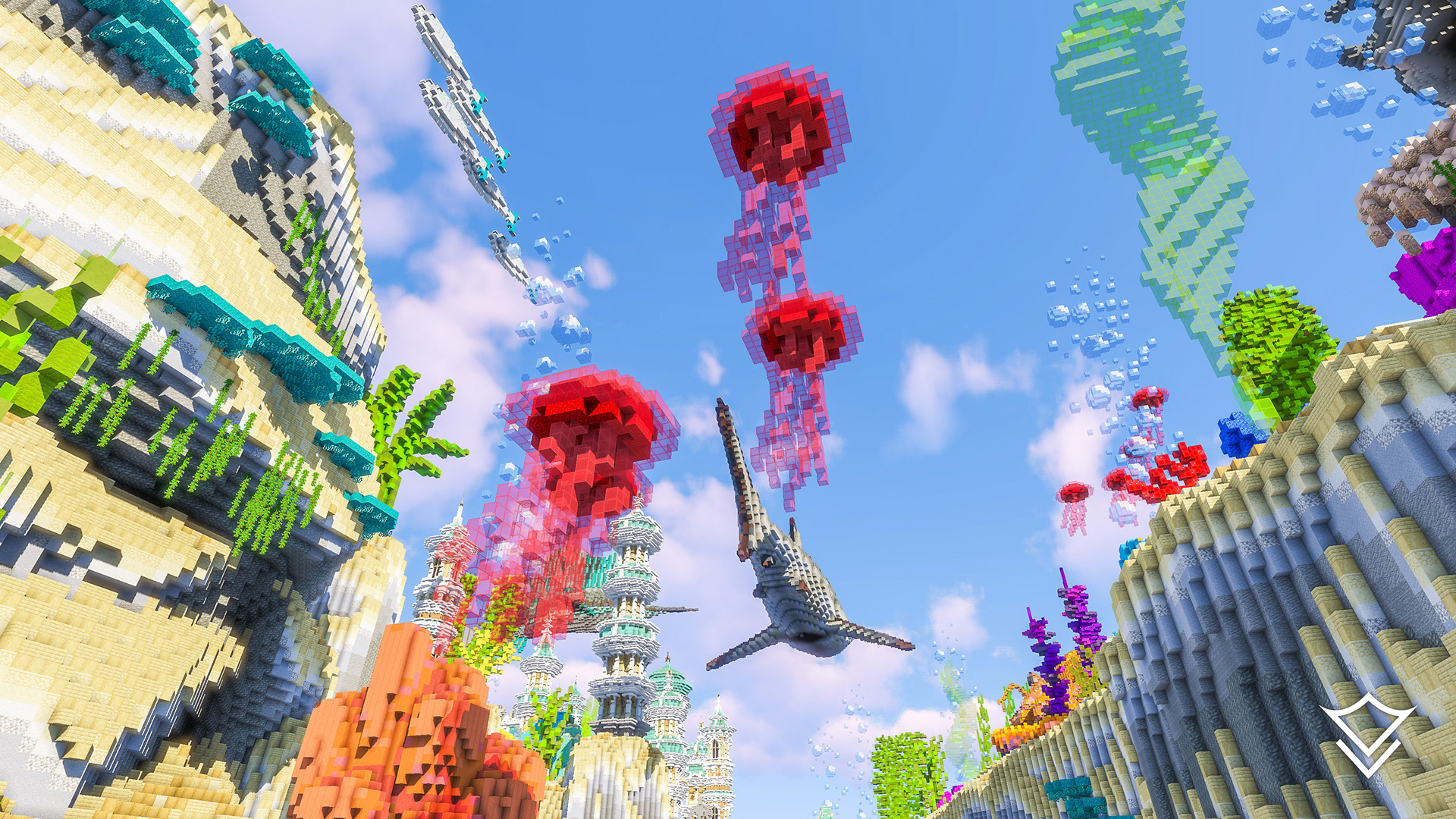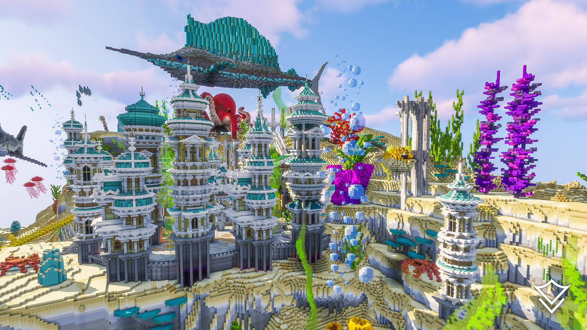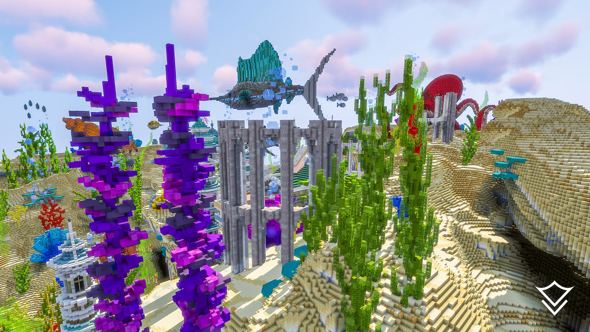 Enhancing the mythic atmosphere, an ancient trident rests forgotten on the ocean floor, hinting at a grand history. With its rich detail and immersive environment, Sargonia is an ideal map for builders, storytellers, and explorers seeking a unique underwater experience.