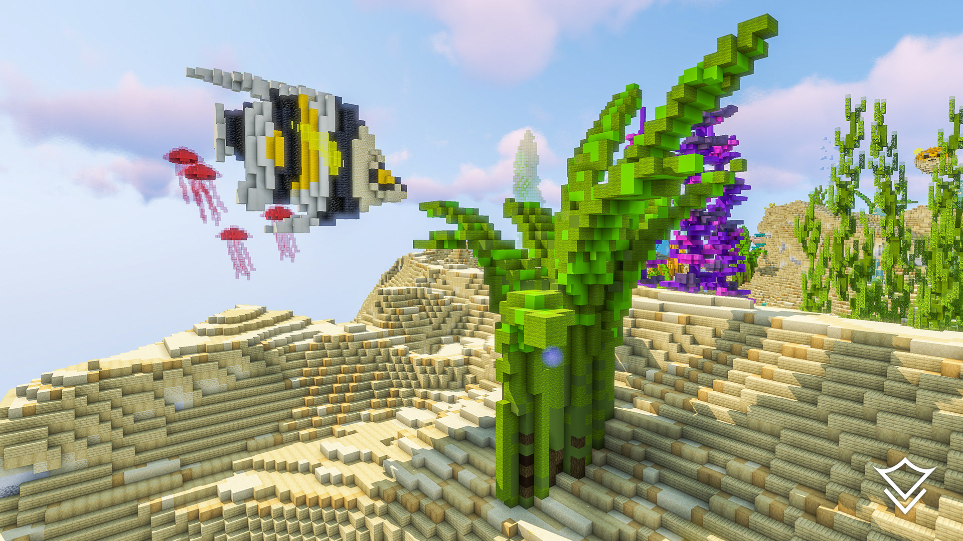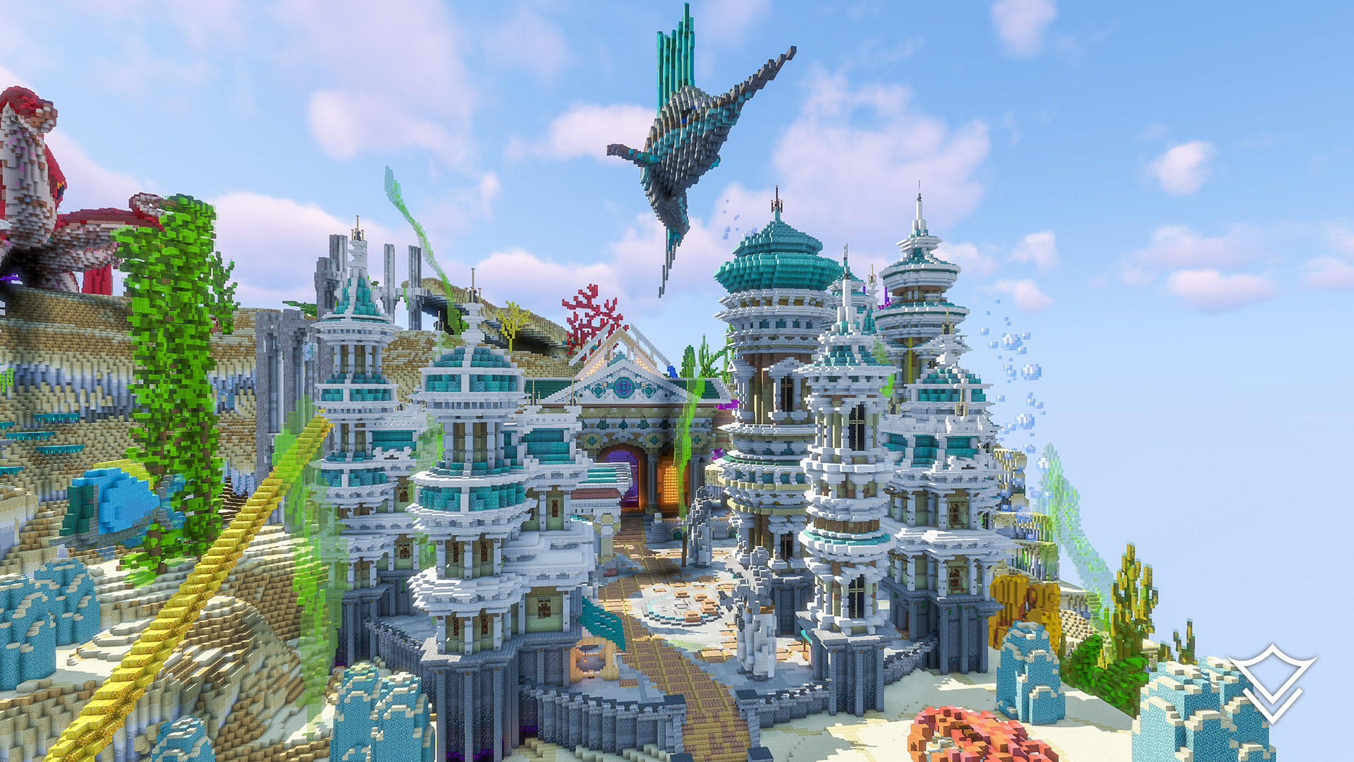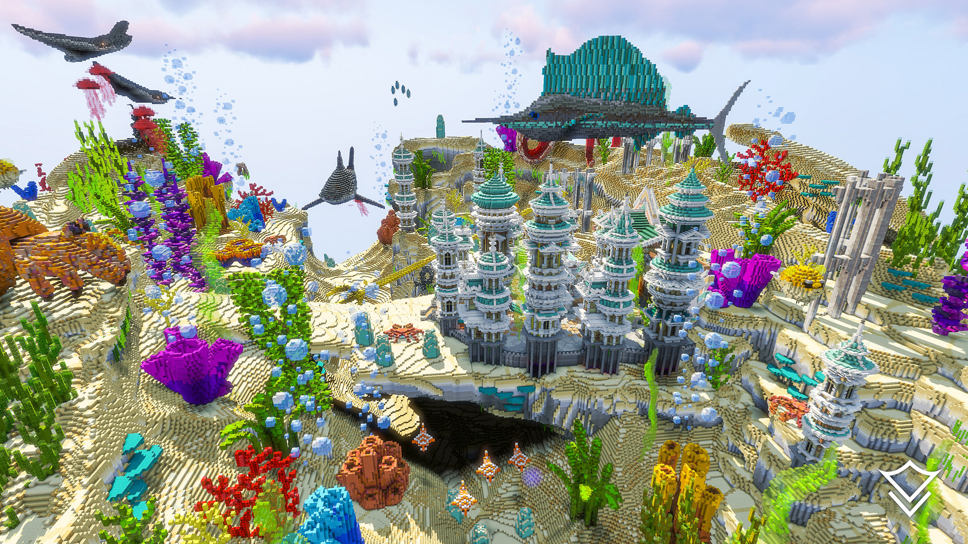 Enhancing the mythic atmosphere, an ancient trident rests forgotten on the ocean floor, hinting at a grand history. With its rich detail and immersive environment, Sargonia is an ideal map for builders, storytellers, and explorers seeking a unique underwater experience.