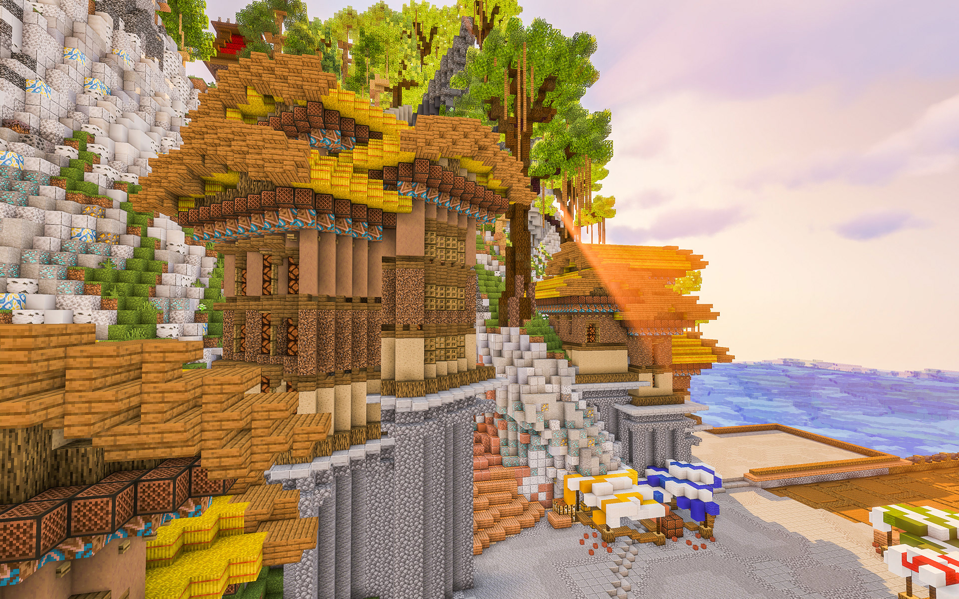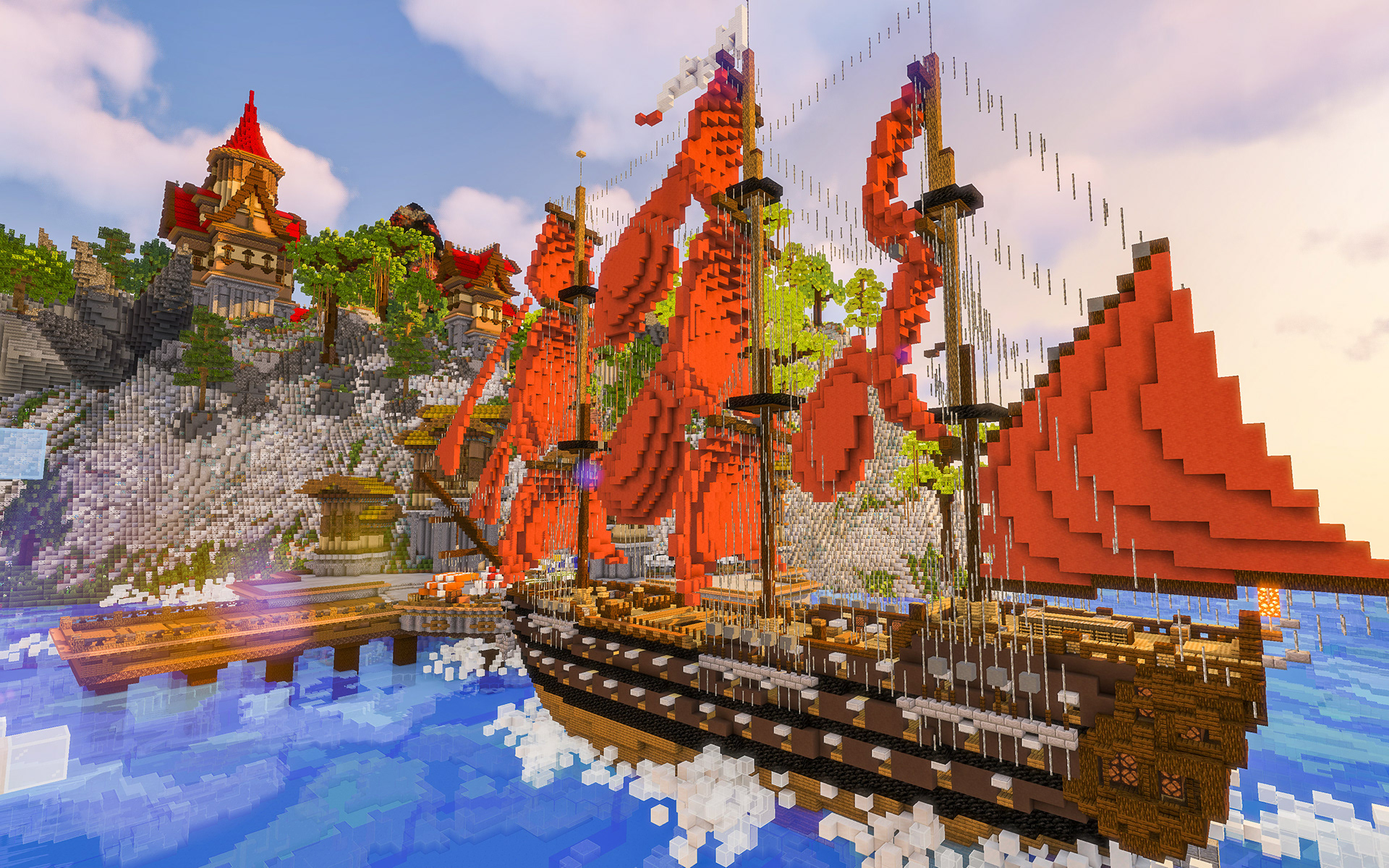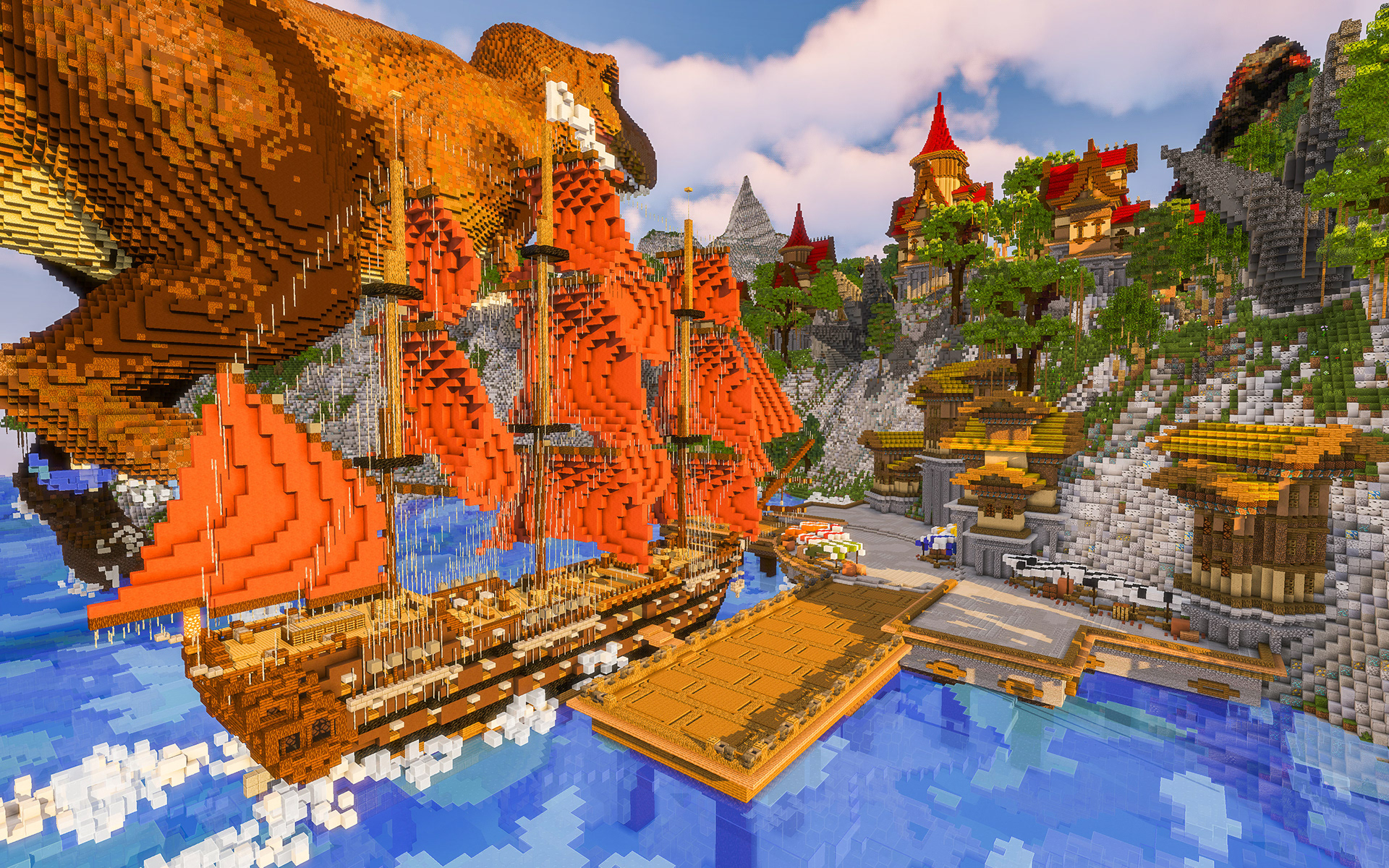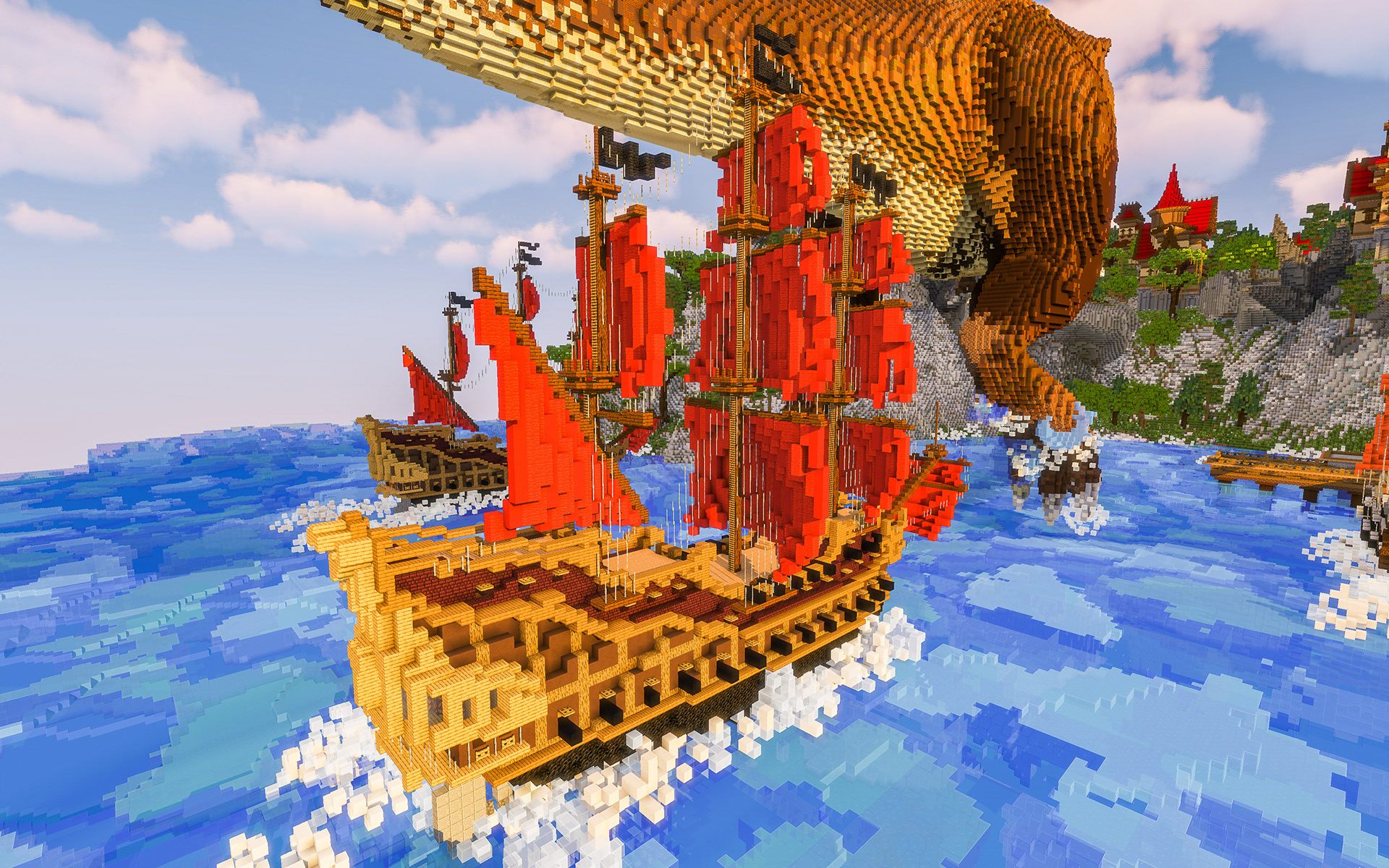 The Island of Vigrid is a beautiful and immersive Minecraft map, with a crescent-moon shaped island topped by fantasy-themed Minecraft houses. As you explore the island, you'll encounter lush forests, sandy beaches, and hidden caves. Whether you're watching the action unfold or joining in the battle yourself, The Island of Vigrid offers a unique and exciting experience for players of all skill levels.