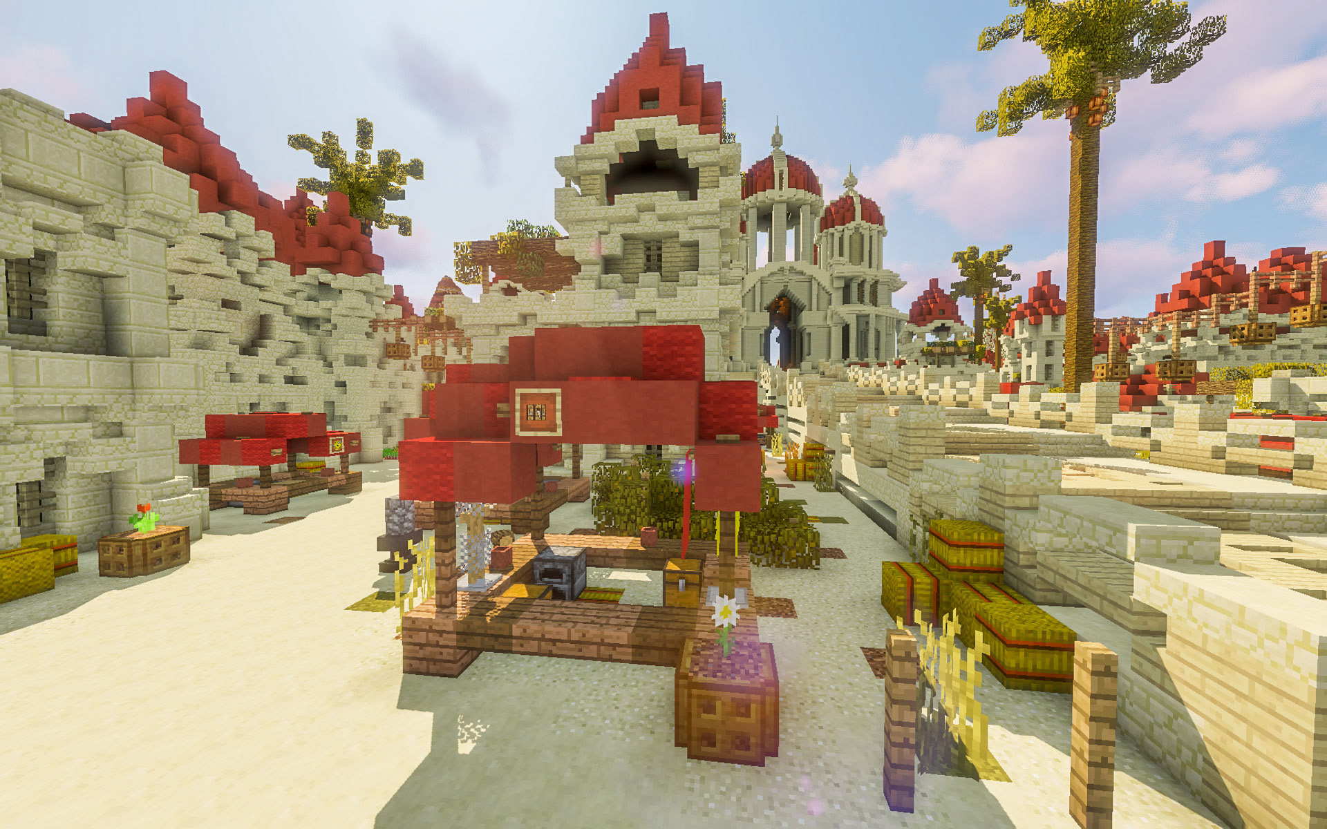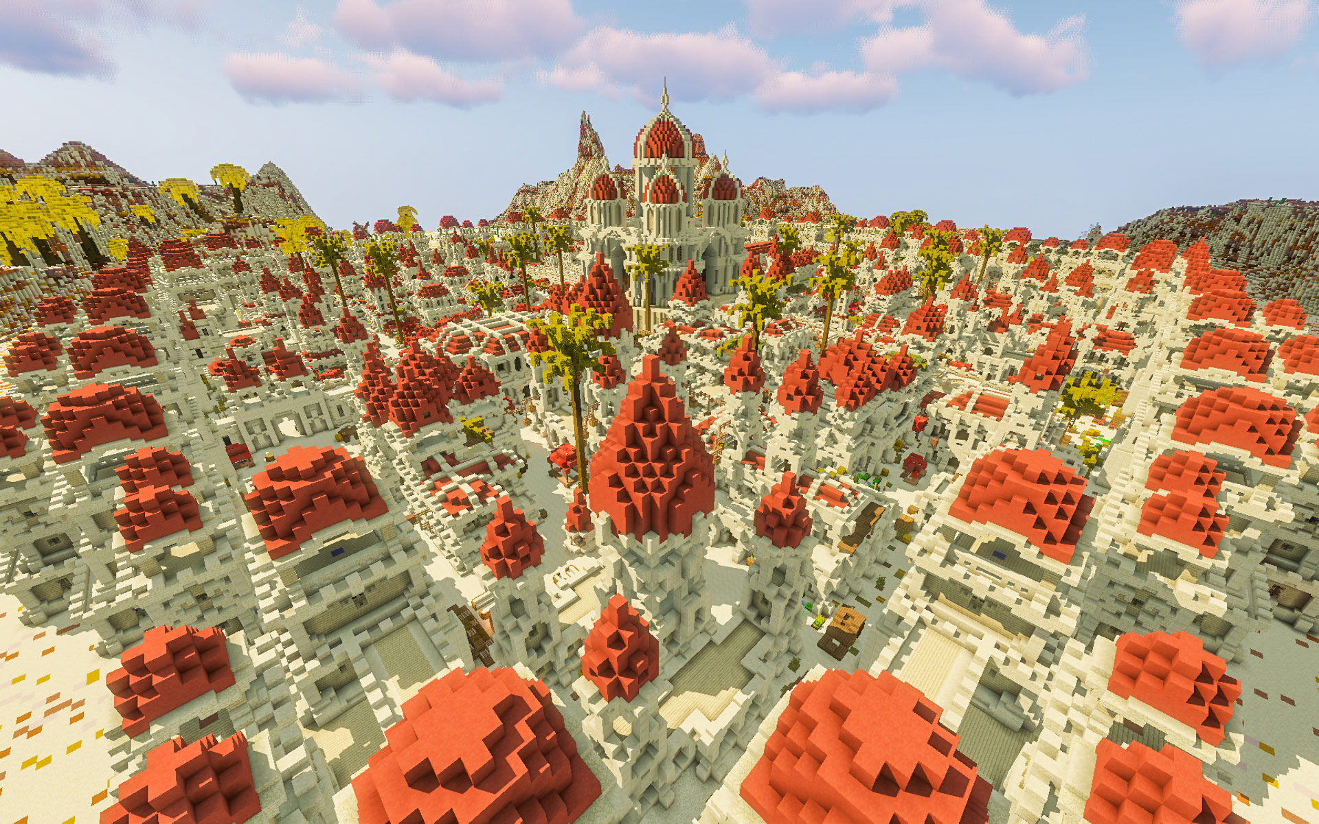 Nestled among the beautiful sand dunes and mountains, The City of Zubuk awaits. This massive desert city is designed with religion at its core, with a grand temple at its center. The city is divided into four sections – upper class, middle class, lower class, and developmental – to create a diverse and vibrant community.